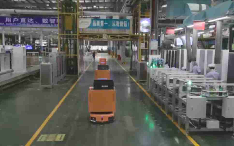 为车载冰箱物流配送打造的智能解决方案,,,包含产中物流通过潜伏举升AMR搬运至线边,,,,产后成品物流智能仓储,,,流程包含产中物流智能齐套入库,,,线边安灯叫料AMR智能配送至线边,,,,成品入库、、、、出库,,,,通过无人堆高车机器人,,,智能仓储管理替代人工作业管理,,,实现更高存储、、、更高效率、、、、更具柔性化的解决方案。。